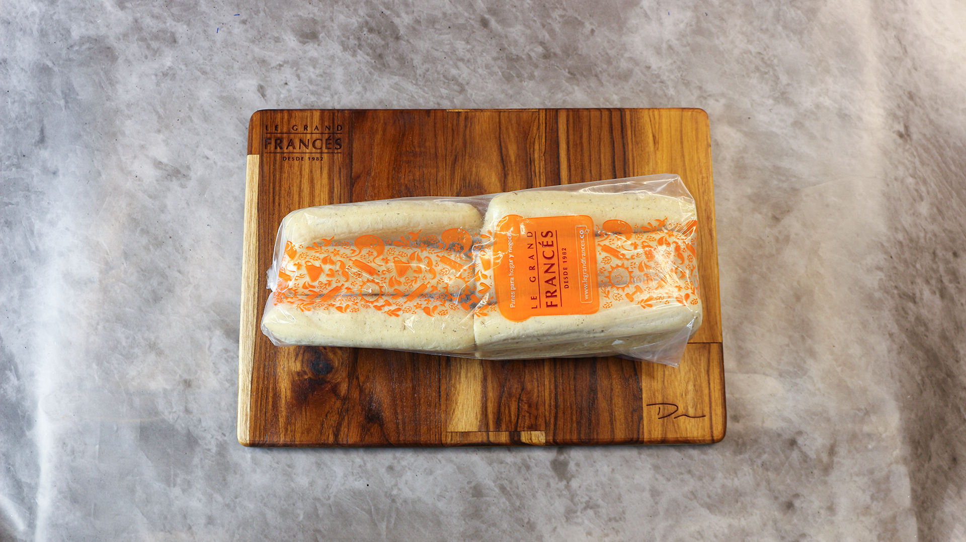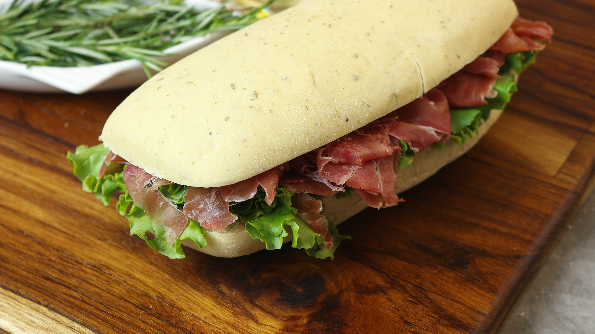Pan artesanal blanco rectangular pequeño con finas hierbas suave sin corteza con finas hierbas, ideal para sandwiches fríos o calientes