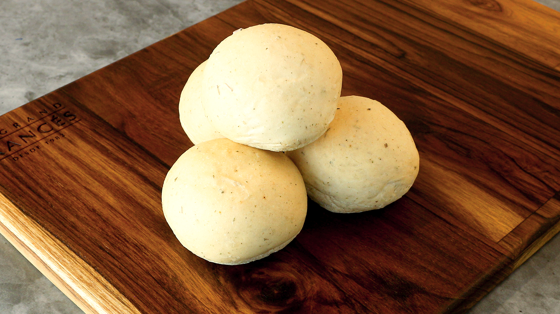 Bolita de pan blanco con adición de ajo y finas hierbas.
